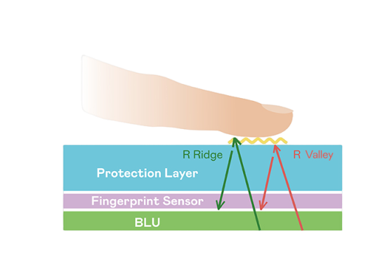 TFT 指纹扫描感测技术利用薄膜电晶体 (TFT) 当作光感测元件,藉由非晶硅 (a-Si) 与低温多晶硅(LTPS)既有光电转换特性对不同波段光源进行吸收,使感测 IC 读取阵列感测元件的光漏电差异,转换成数位灰阶影像。